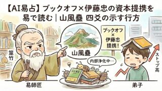 【AI易占】ブックオフ×伊藤忠の資本提携を易で読む|山風蠱 四爻の示す行方