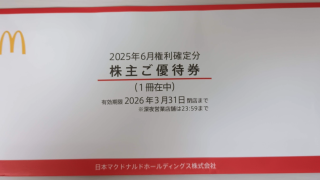 株主優待 (株主優待)日本マクドナルド こんにちは。マクドナルドの優待券が少し前に届きました。はじめに日本のフードチェーン、**日本マクドナルドホールディングス(証券コード:2702)**は、株主優待として「無料食事券」を贈呈してくれます。投資家なら必見!株価が上昇すればキャピタ... 2025.10.30 株主優待