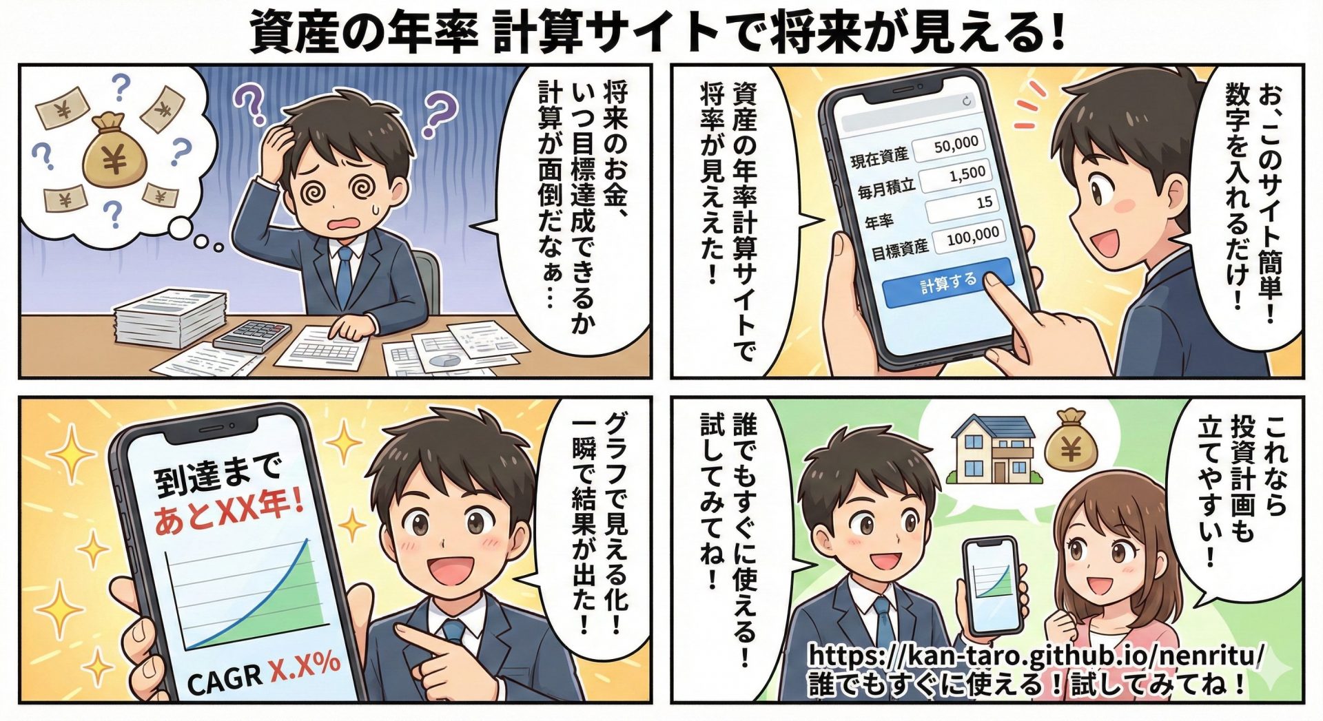「株の年率計算サイト」は、投資初心者から経験者まで、誰でもすぐに使えるシンプルなツールです。