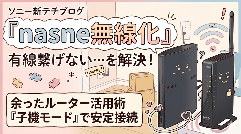 有線接続が難しくなったnasneを無線化する試みを忘備録で残しておきます。