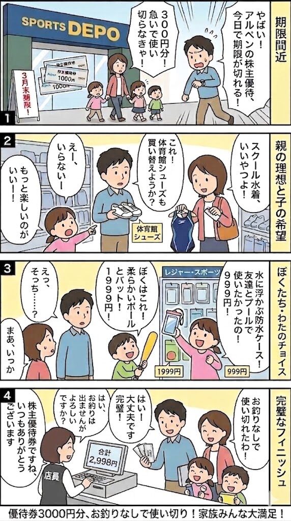 アルペンは、スポーツデポ、ゴルフ5、アルペンなどの店舗で使える「株主ご優待券」が年2回もらえる、優待投資家に人気の銘柄です。